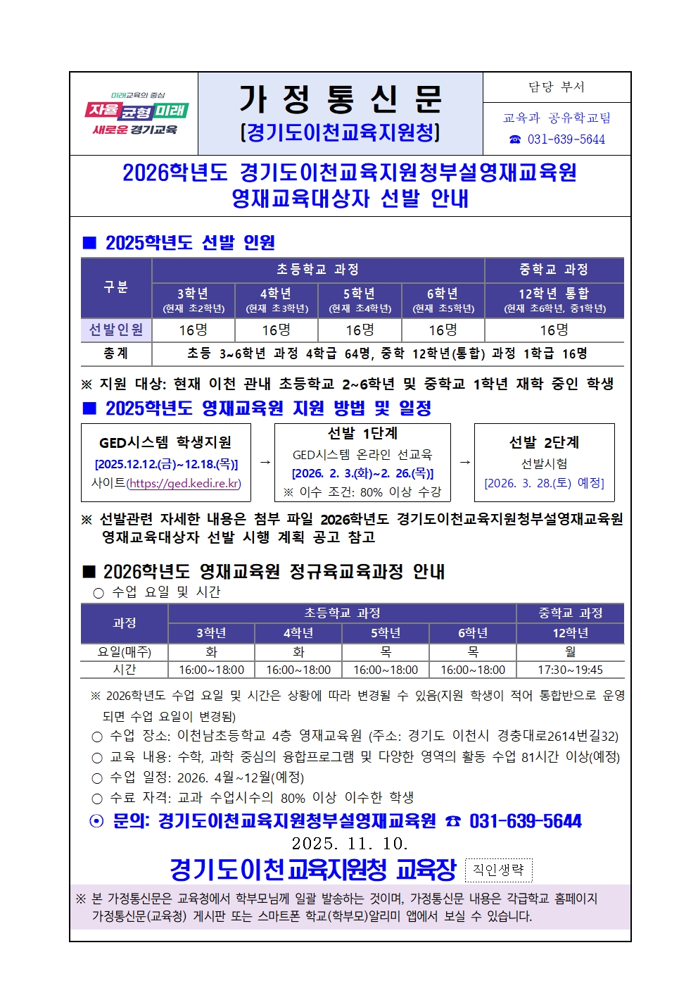 붙임2. 2026학년도 경기도이천교육지원청부설영재교육원 선발 안내 가정통신문.hwp